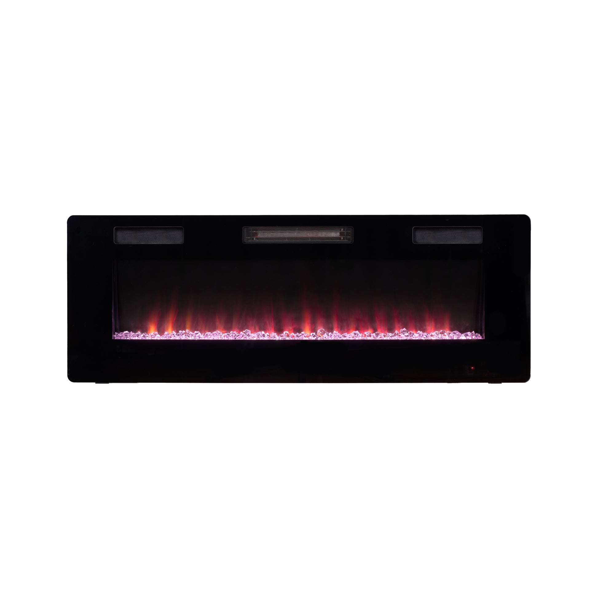 This electric fireplace combines style and performance with 12 flame colors, 12 LED bed options, and two heat modes—Low (750W) and High (1500W). It heats up to 400 sq. ft. and features adjustable flame speed, brightness, and an 8-hour timer for personalized comfort. Designed for easy wall-mounted or recessed installation, it includes touch and remote controls, sleep mode, and built-in overheat protection for safe, efficient use.