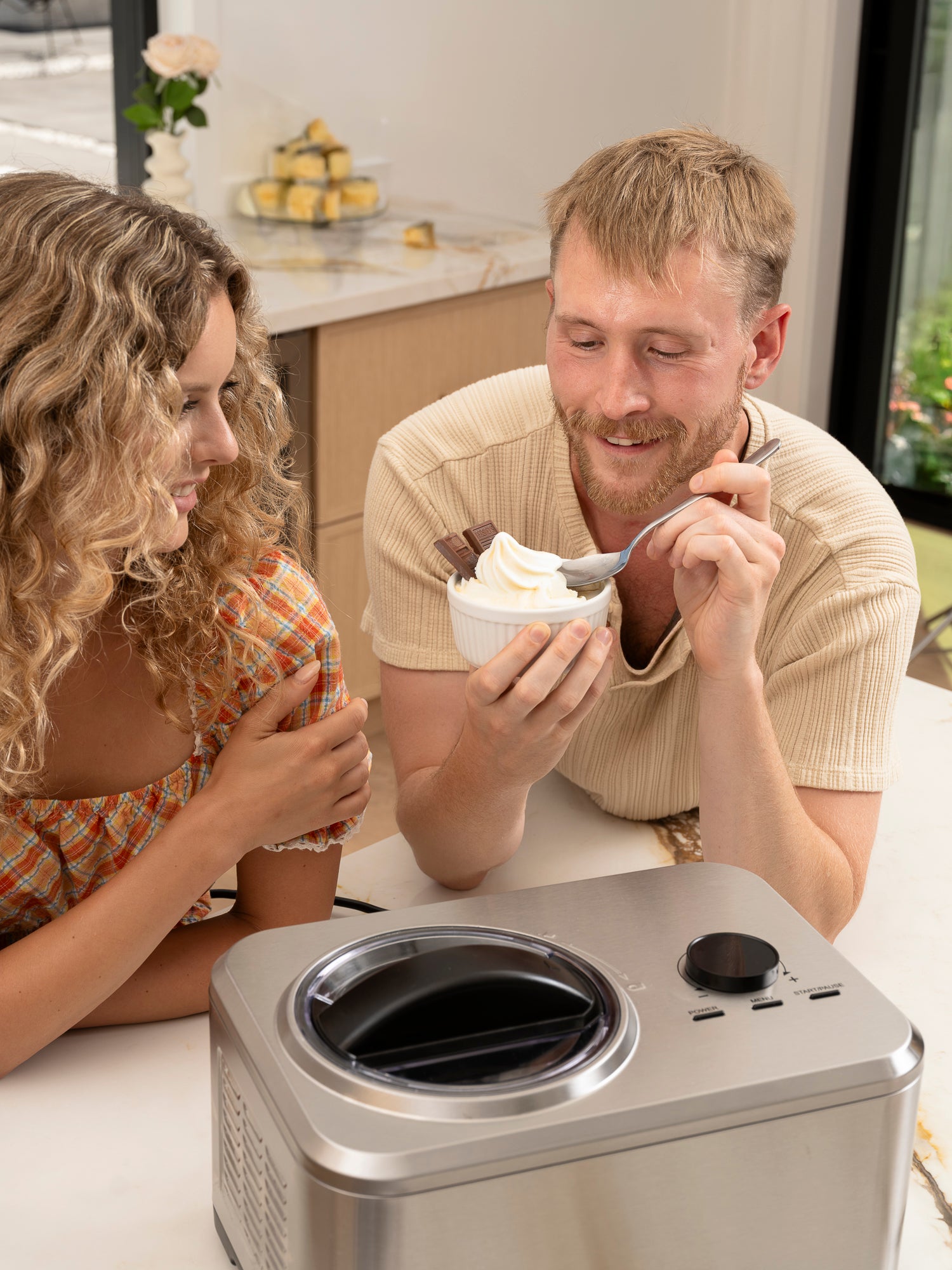 Create homemade ice cream, gelato, yogurt, or sorbet with this versatile machine—no pre-freezing required. Its built-in 150W compressor freezes your mixture evenly, delivering creamy results in just 60 minutes. With a 1.5L capacity, four operating modes, and an easy-to-read LED display, it’s perfect for experimenting with flavors and making treats for family and friends. The detachable bowl and compact design make cleanup and storage simple, while its quiet operation ensures a smooth kitchen experience.
