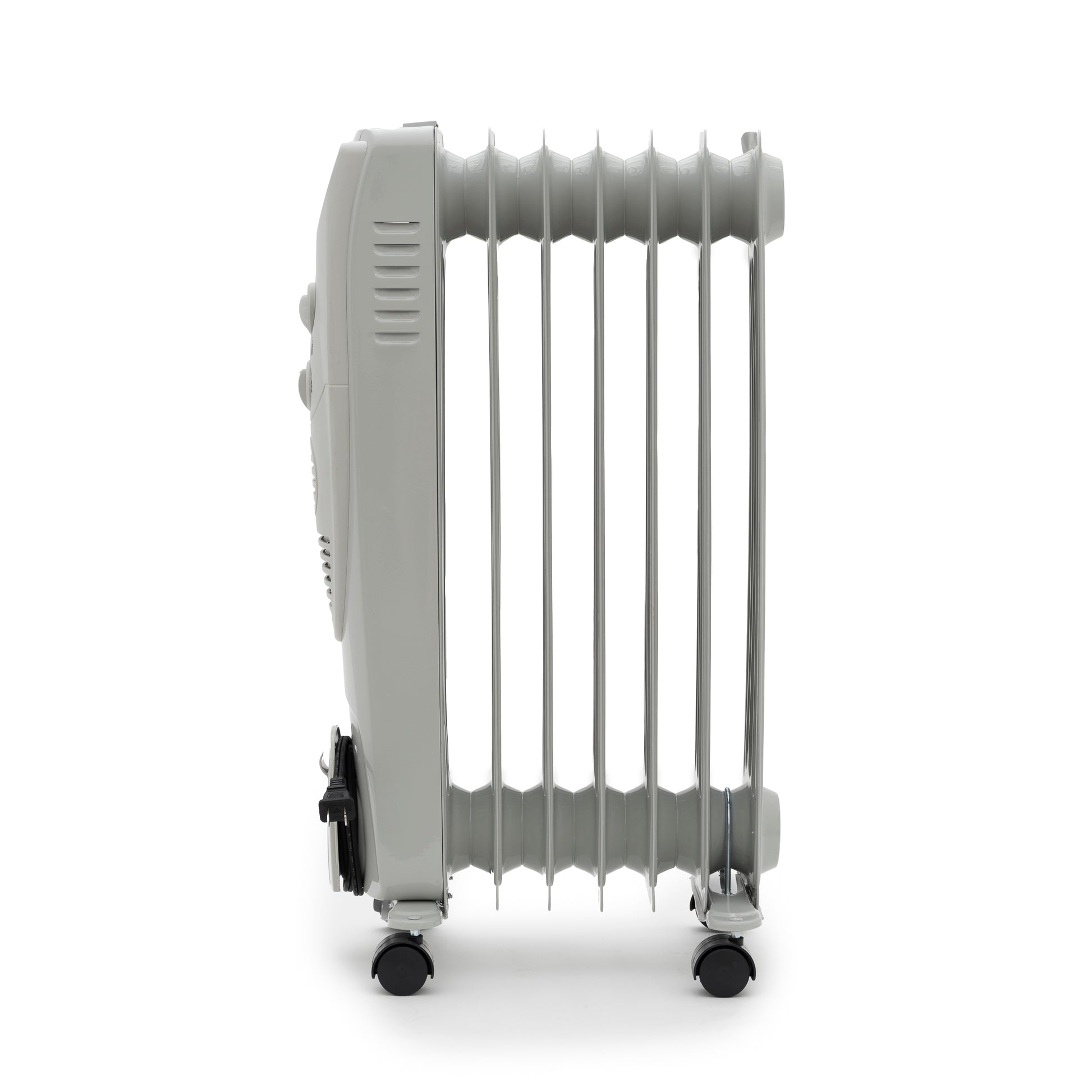 This compact portable oil-filled radiator heater delivers efficient, quiet warmth with three adjustable heat settings. Designed to heat spaces up to 120 sq. ft., it’s perfect for bedrooms, offices, or small living areas. Safety features like tip-over protection, overheat shut-off, and ETL certification provide peace of mind, while casters and a built-in handle make it easy to move wherever heat is needed. Its energy-saving thermostat and compact size make it a reliable, cost-effective heating solution.