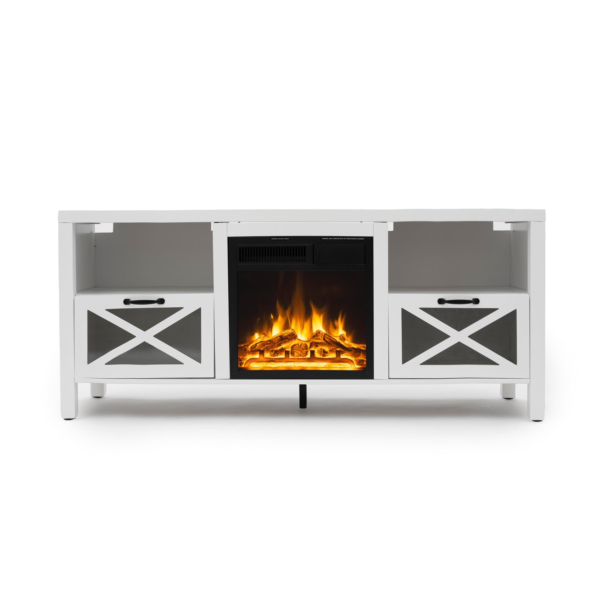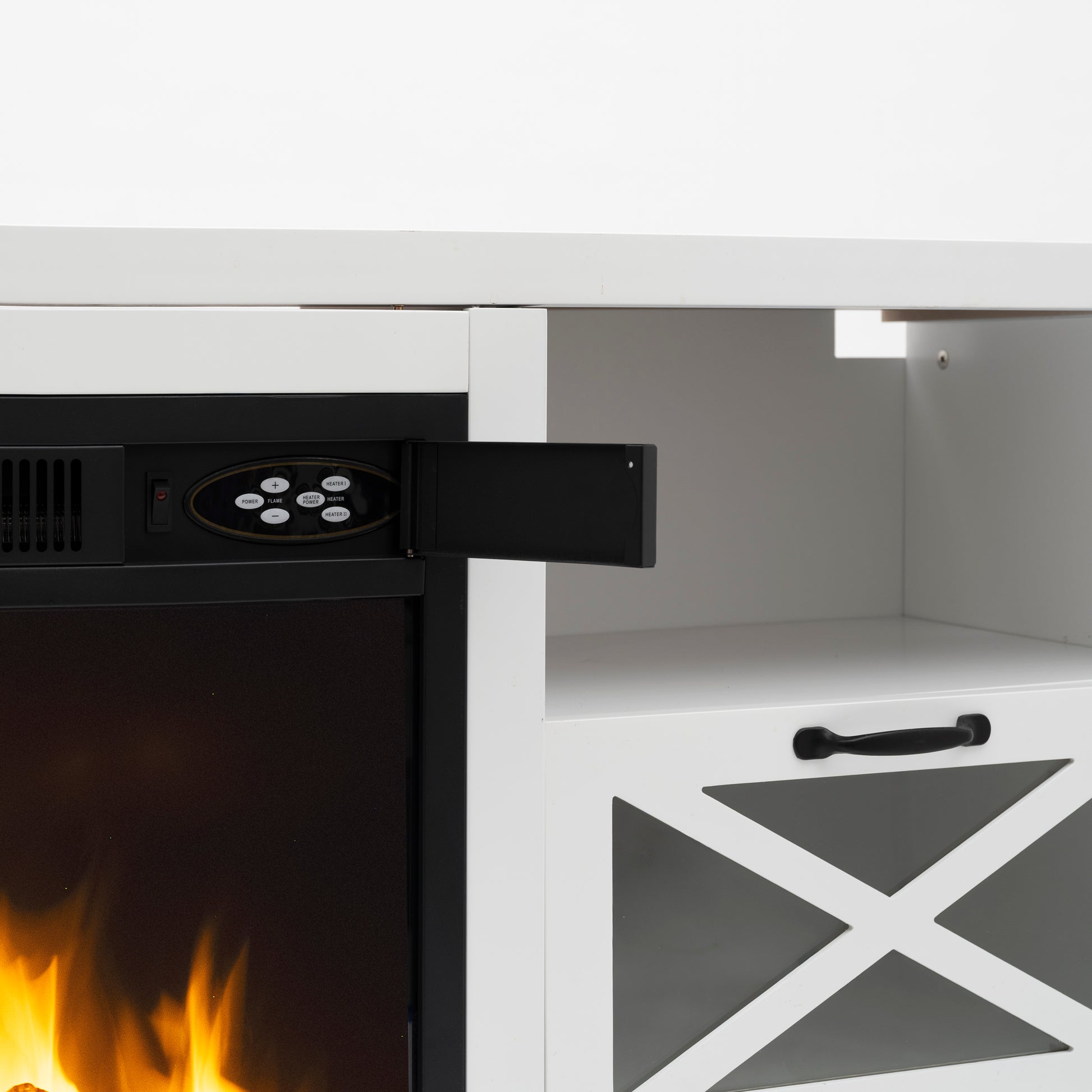 R.W.FLAME Rustic White TV Stand with Electric Fireplace
