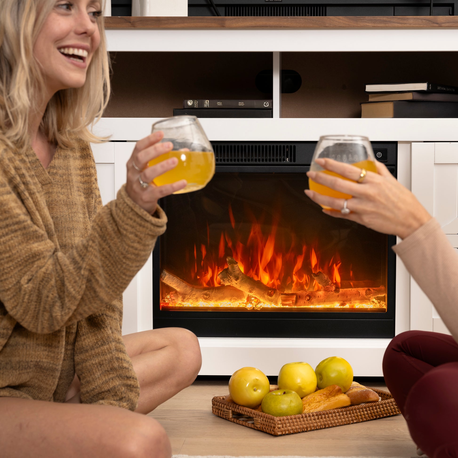 Modern TV Stand With Built-In Electric Fireplace and Customizable Flame Effects
