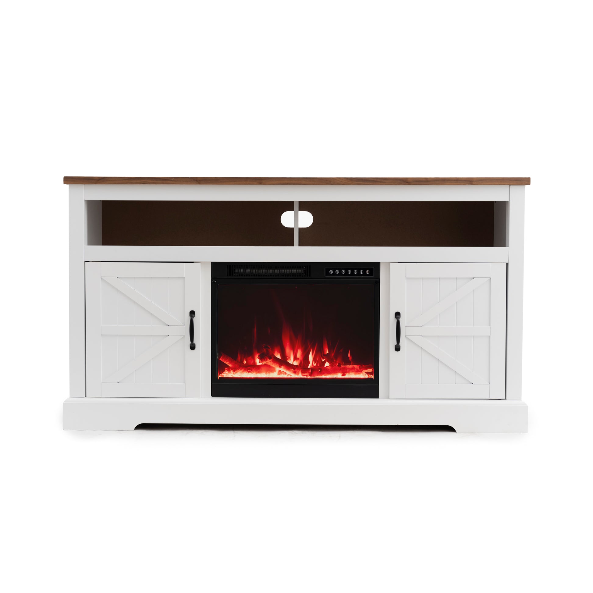 R.W.FLAME Walnut Top TV Stand with Electric Fireplace